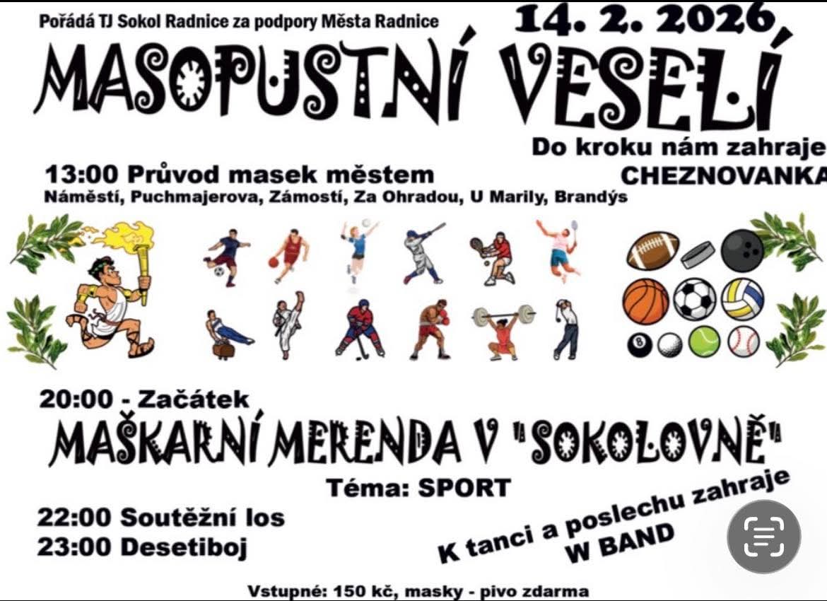 14.2.2026 se v Radnické sokolovně uskuteční Masopust.